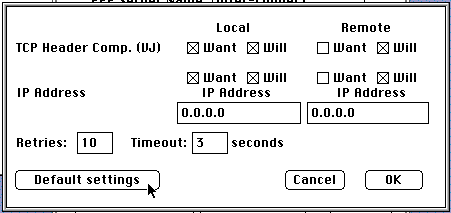 - Click on IPCP Options and again click on default, then done.