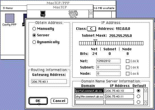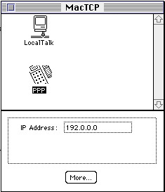 - Press "OK" and then close the window for Mac TCP